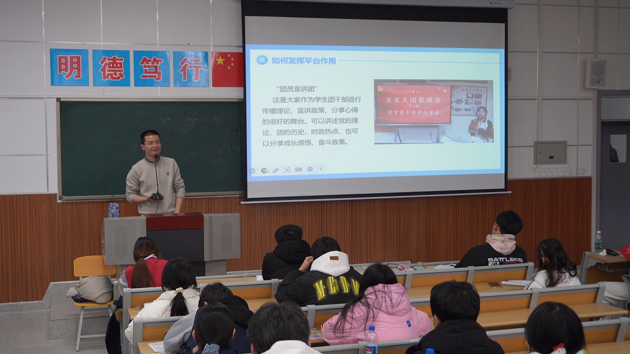 开班仪式后,培训在学校综合楼教室举行。本次培训采用“教师组 学生组”分轨教学模式,围绕“政策解读与思想政治教育”“心理健康教育”“团课组织讲授与朋辈教育”三大模块,邀请省、市相关领域专家进行授课。教师组内容侧重强化政治引领能力与专业指导水平,聚焦政策解读深度、教育方法论及引导技巧,助力其精准把控方向、提升统筹能力。学生组内容则贴合朋辈身份,聚焦激发主观能动性与实践能力,提升团课讲授、沟通协调等能力。不仅夯实教师引领根基,又激活学生参与活力,推动团干部队伍上下联动、优势互补。