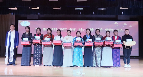 典礼上,陈峰为阿里班师生代表赠送学习生活用品。